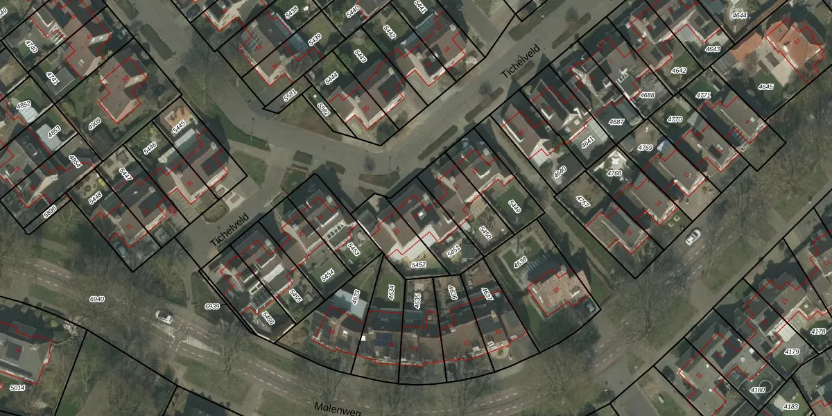 Het perceel waarop Tichelveld 19 staat heeft een oppervlakte van 225 m². Dit is een middelgroot perceel. De perceeloppervlakte wordt geregistreerd door het Kadaster. Gedetailleerde informatie over de maten van dit perceel kunt u vinden in het rapport Kadastrale kaart met maatvoering van Tichelveld 19.