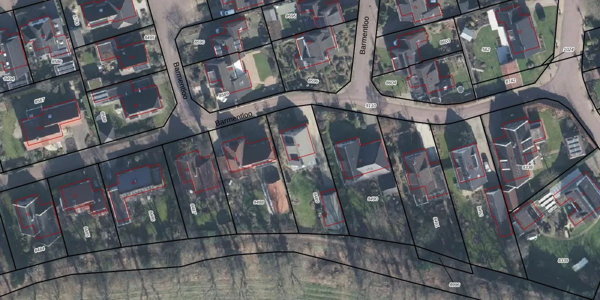 Het perceel waarop Barmentloo 9 staat heeft een oppervlakte van 696 m². Dit is een groot perceel. De perceeloppervlakte wordt geregistreerd door het Kadaster. Gedetailleerde informatie over de maten van dit perceel kunt u vinden in het rapport Kadastrale kaart met maatvoering van Barmentloo 9.