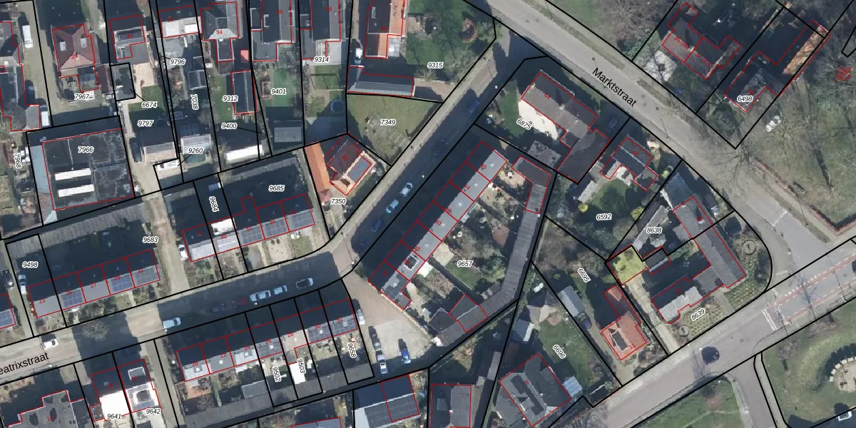 Het perceel waarop Beatrixstraat 40 staat heeft een oppervlakte van 2461 m². Dit is een zeer groot perceel. De perceeloppervlakte wordt geregistreerd door het Kadaster. Gedetailleerde informatie over de maten van dit perceel kunt u vinden in het rapport Kadastrale kaart met maatvoering van Beatrixstraat 40.