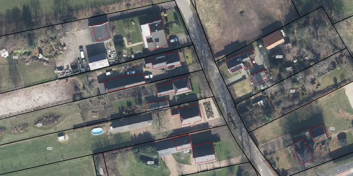 Het perceel waarop Bergweg 5 staat heeft een oppervlakte van 2910 m². Dit is een zeer groot perceel. De perceeloppervlakte wordt geregistreerd door het Kadaster. Gedetailleerde informatie over de maten van dit perceel kunt u vinden in het rapport Kadastrale kaart met maatvoering van Bergweg 5.
