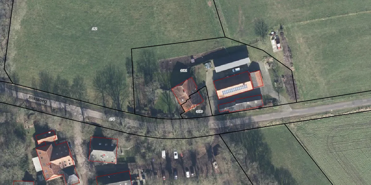 Het perceel waarop Bliksteeg 2 staat heeft een oppervlakte van 2930 m². Dit is een zeer groot perceel. De perceeloppervlakte wordt geregistreerd door het Kadaster. Gedetailleerde informatie over de maten van dit perceel kunt u vinden in het rapport Kadastrale kaart met maatvoering van Bliksteeg 2.