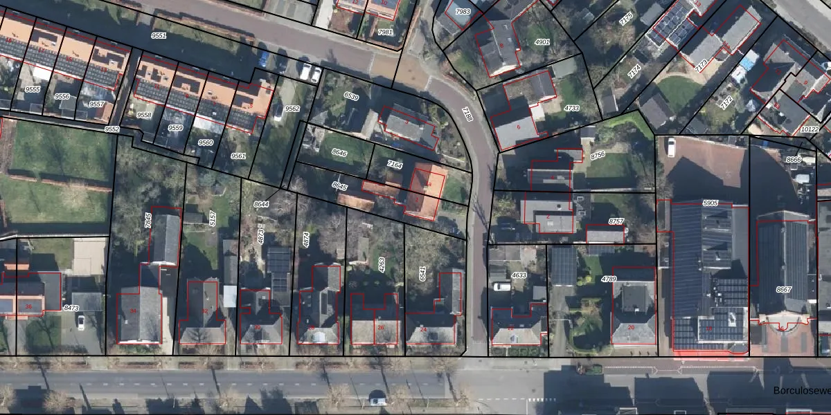 Gebruik de zoekbalk of klik op een perceel voor informatie over de adressen binnen dit perceel.