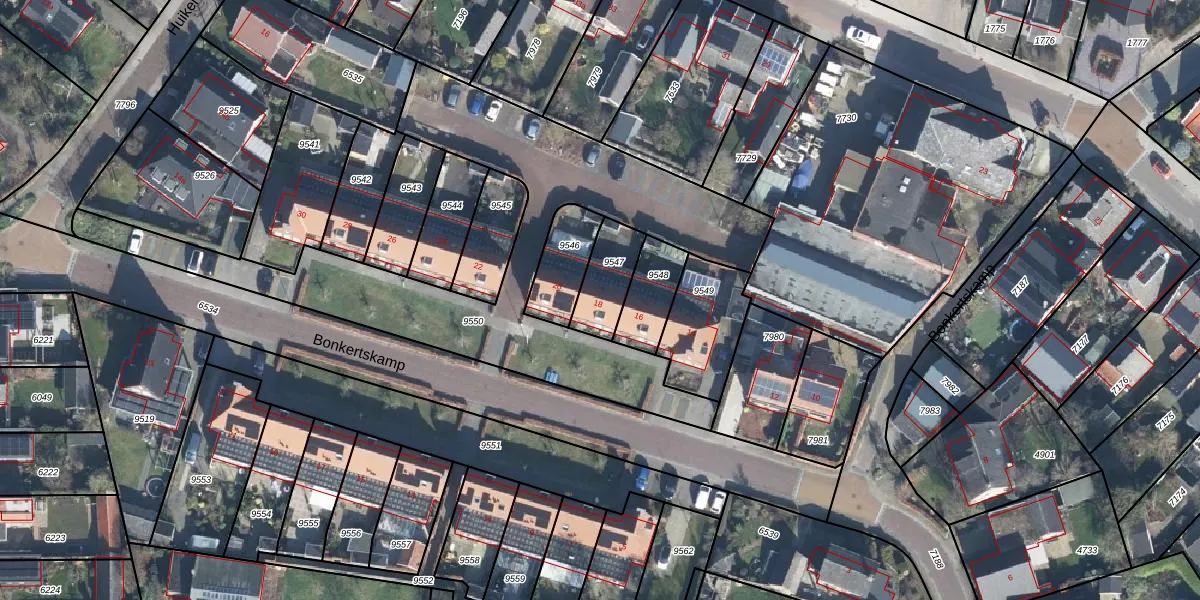 Bonkertskamp 18 is gelegen op kadastraal perceel NDE00C9547. Deze kadastrale aanduiding is uniek en wordt gebruikt door het Kadaster om eigendomsrechten en andere zakelijke rechten vast te leggen. Het perceel maakt onderdeel uit van de kadastrale gemeente Neede.