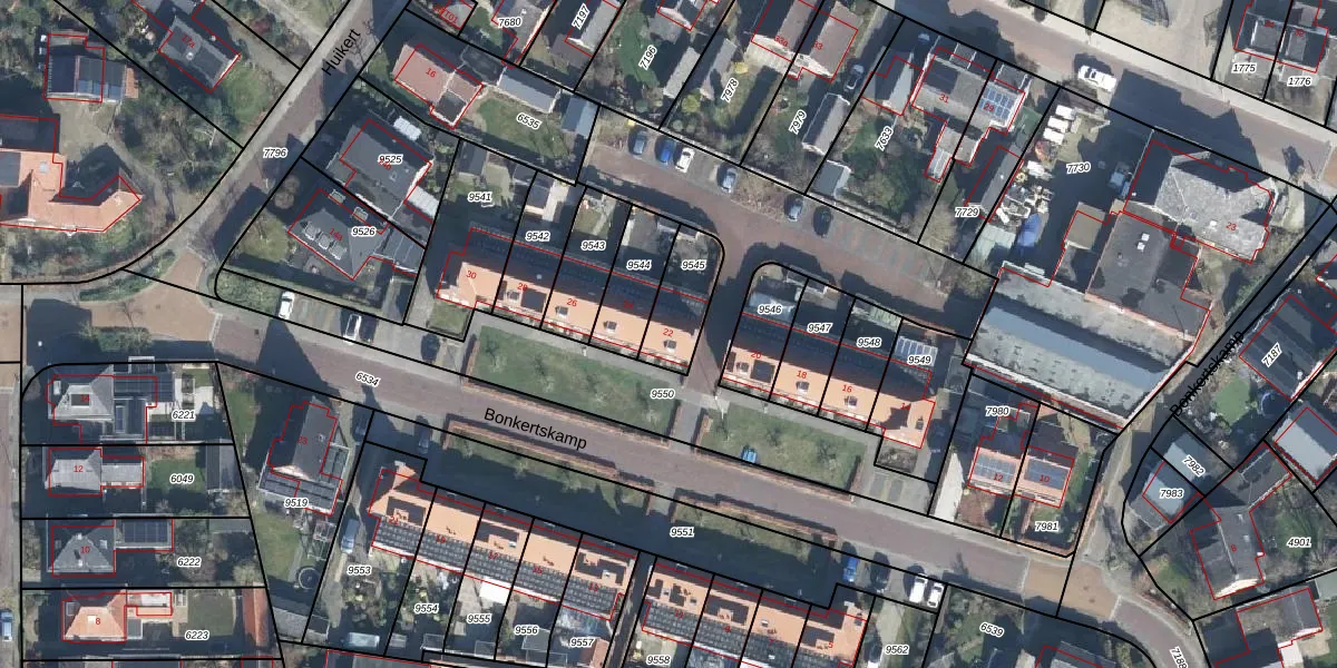 Het perceel waarop Bonkertskamp 22 staat heeft een oppervlakte van 165 m². Dit is een middelgroot perceel. De perceeloppervlakte wordt geregistreerd door het Kadaster. Gedetailleerde informatie over de maten van dit perceel kunt u vinden in het rapport Kadastrale kaart met maatvoering van Bonkertskamp 22.