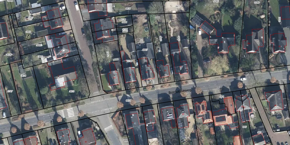 Gebruik de zoekbalk of klik op een perceel voor informatie over de adressen binnen dit perceel.