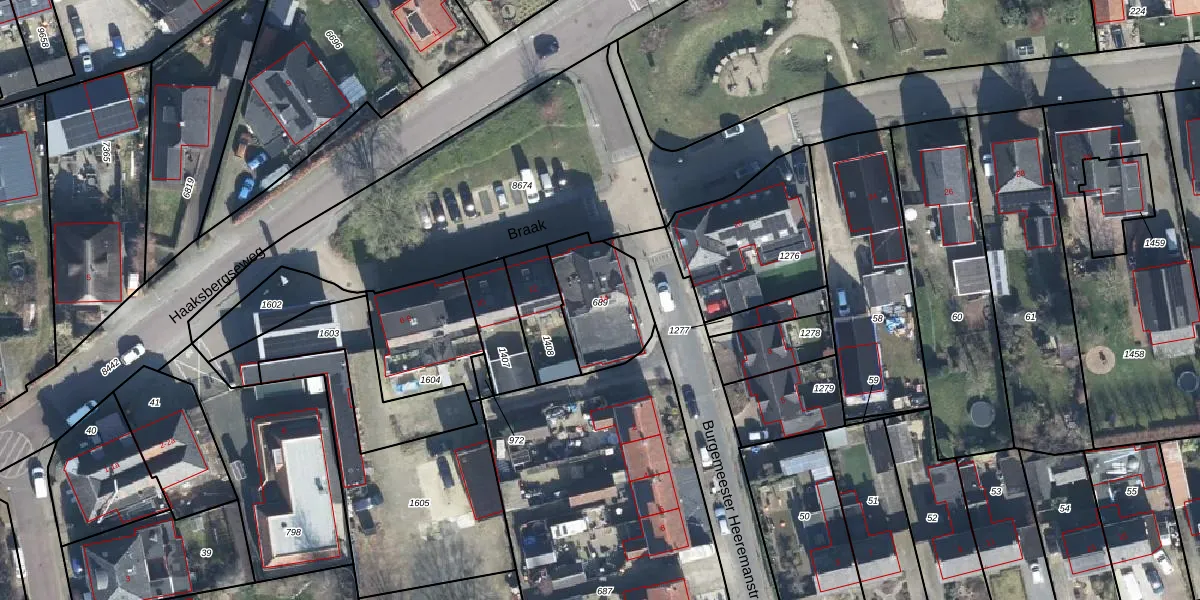 Het perceel waarop Braak 14 staat heeft een oppervlakte van 284 m². Dit is een middelgroot perceel. De perceeloppervlakte wordt geregistreerd door het Kadaster. Gedetailleerde informatie over de maten van dit perceel kunt u vinden in het rapport Kadastrale kaart met maatvoering van Braak 14.
