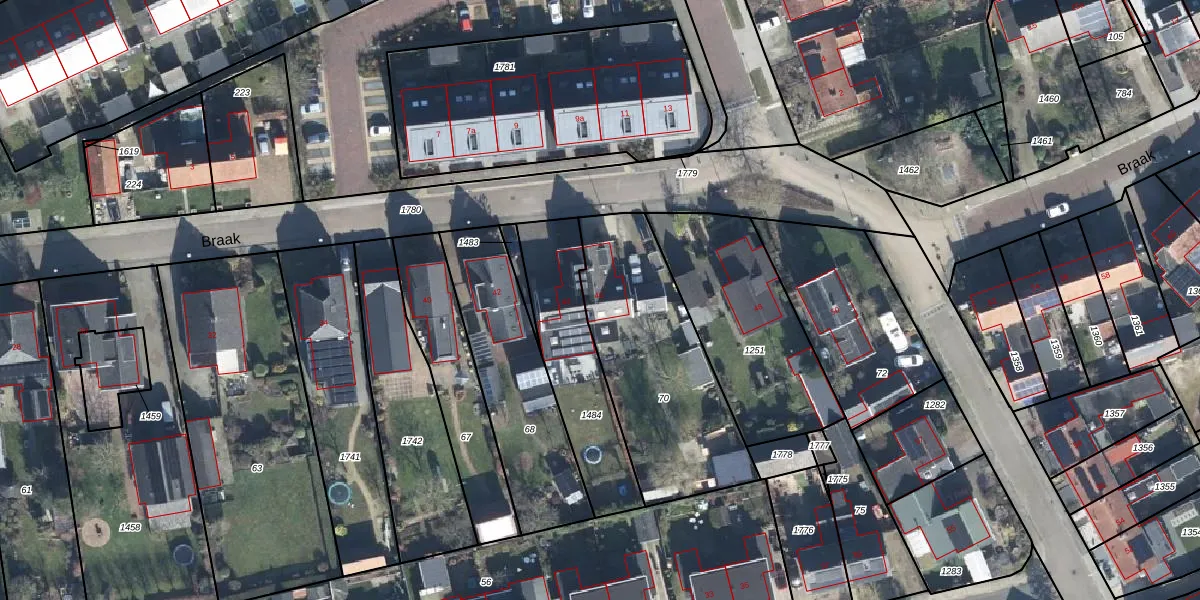 Het perceel waarop Braak 46 staat heeft een oppervlakte van 795 m². Dit is een groot perceel. De perceeloppervlakte wordt geregistreerd door het Kadaster. Gedetailleerde informatie over de maten van dit perceel kunt u vinden in het rapport Kadastrale kaart met maatvoering van Braak 46.