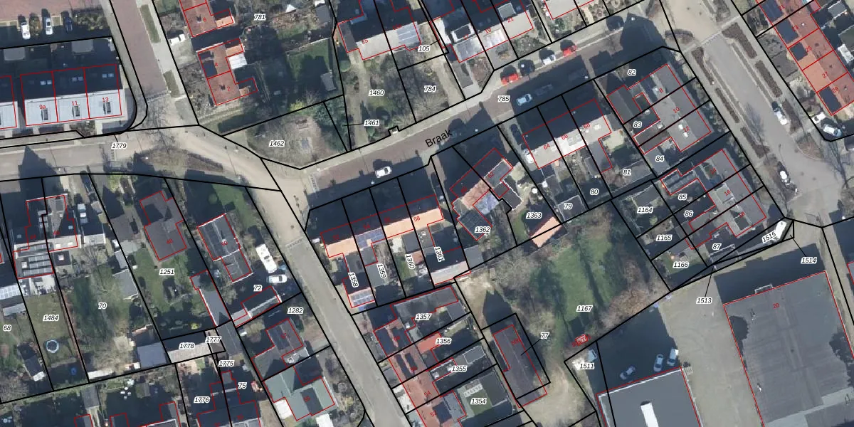 Het perceel waarop Braak 58 staat heeft een oppervlakte van 252 m². Dit is een middelgroot perceel. De perceeloppervlakte wordt geregistreerd door het Kadaster. Gedetailleerde informatie over de maten van dit perceel kunt u vinden in het rapport Kadastrale kaart met maatvoering van Braak 58.