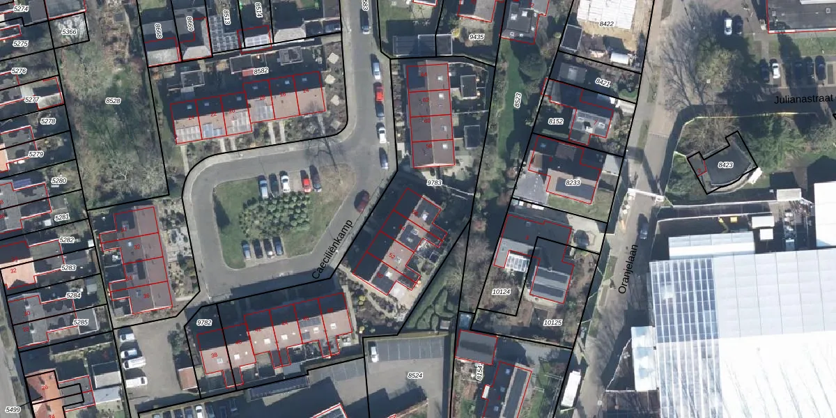 Het perceel waarop Caeciliënkamp 56 staat heeft een oppervlakte van 2026 m². Dit is een zeer groot perceel. De perceeloppervlakte wordt geregistreerd door het Kadaster. Gedetailleerde informatie over de maten van dit perceel kunt u vinden in het rapport Kadastrale kaart met maatvoering van Caeciliënkamp 56.