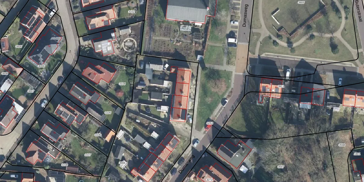 Het perceel waarop Dumasweg 27 staat heeft een oppervlakte van 4002 m². Dit is een zeer groot perceel. De perceeloppervlakte wordt geregistreerd door het Kadaster. Gedetailleerde informatie over de maten van dit perceel kunt u vinden in het rapport Kadastrale kaart met maatvoering van Dumasweg 27.