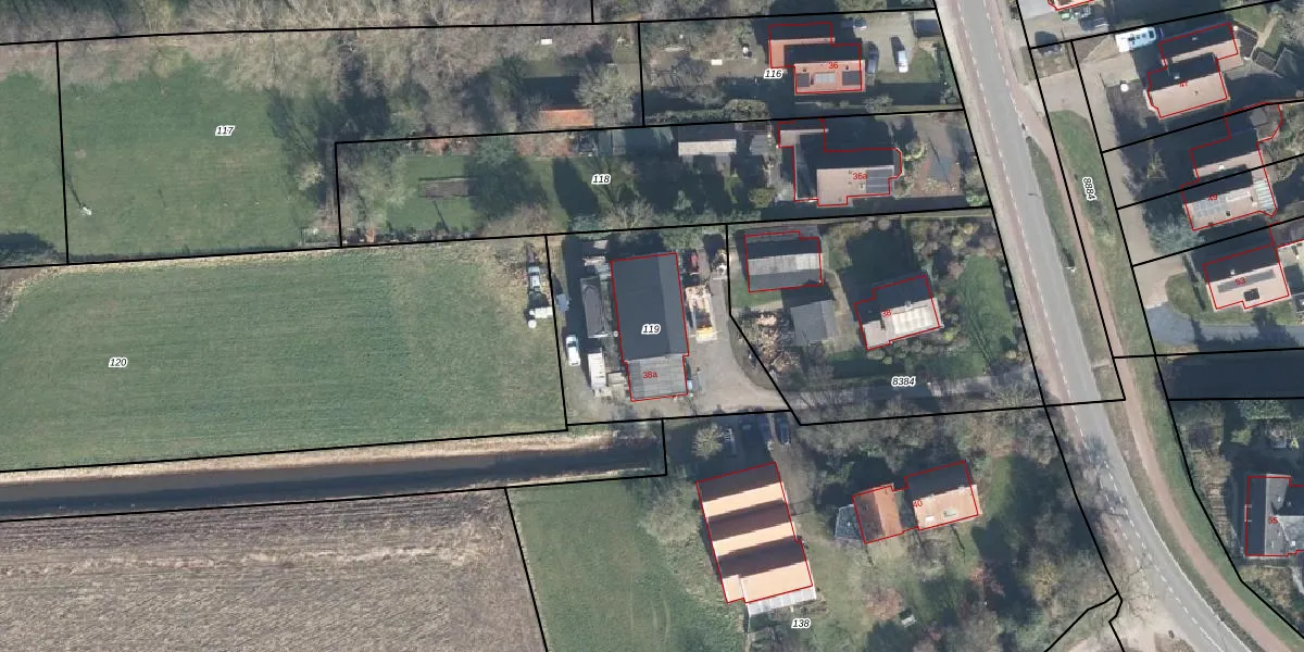Eibergseweg 38-a is gelegen op kadastraal perceel NDE00L119. Deze kadastrale aanduiding is uniek en wordt gebruikt door het Kadaster om eigendomsrechten en andere zakelijke rechten vast te leggen. Het perceel maakt onderdeel uit van de kadastrale gemeente Neede.