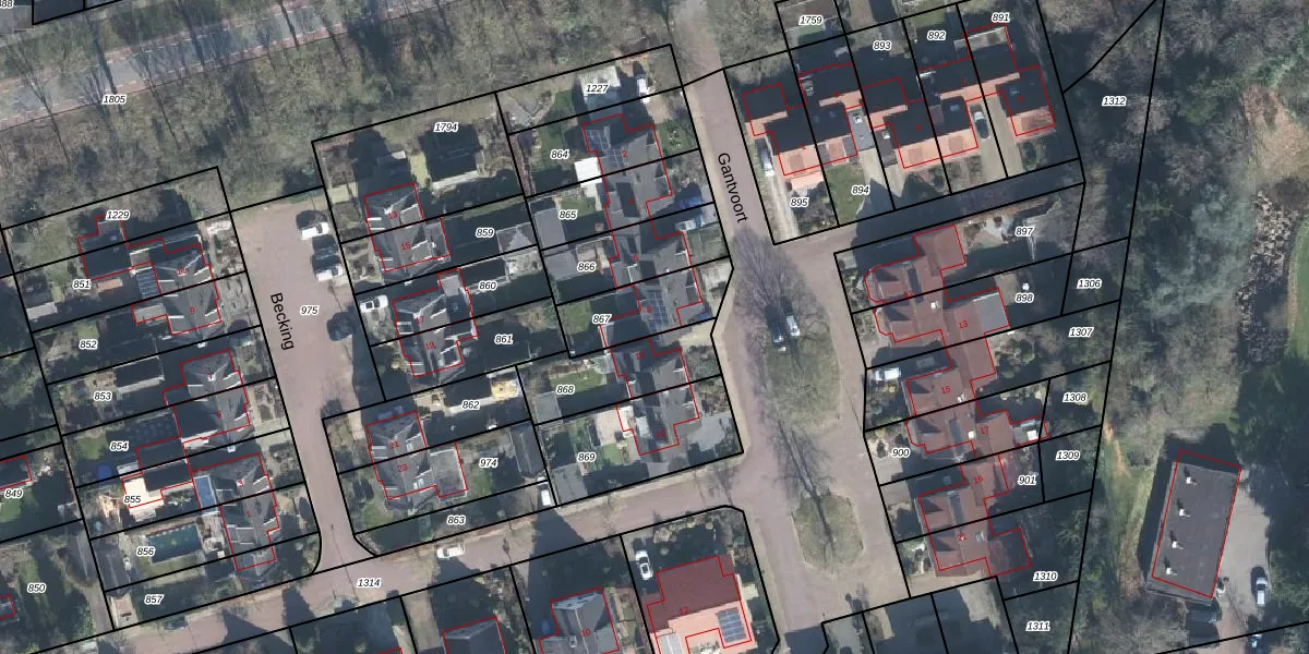 Gebruik de zoekbalk of klik op een perceel voor informatie over de adressen binnen dit perceel.
