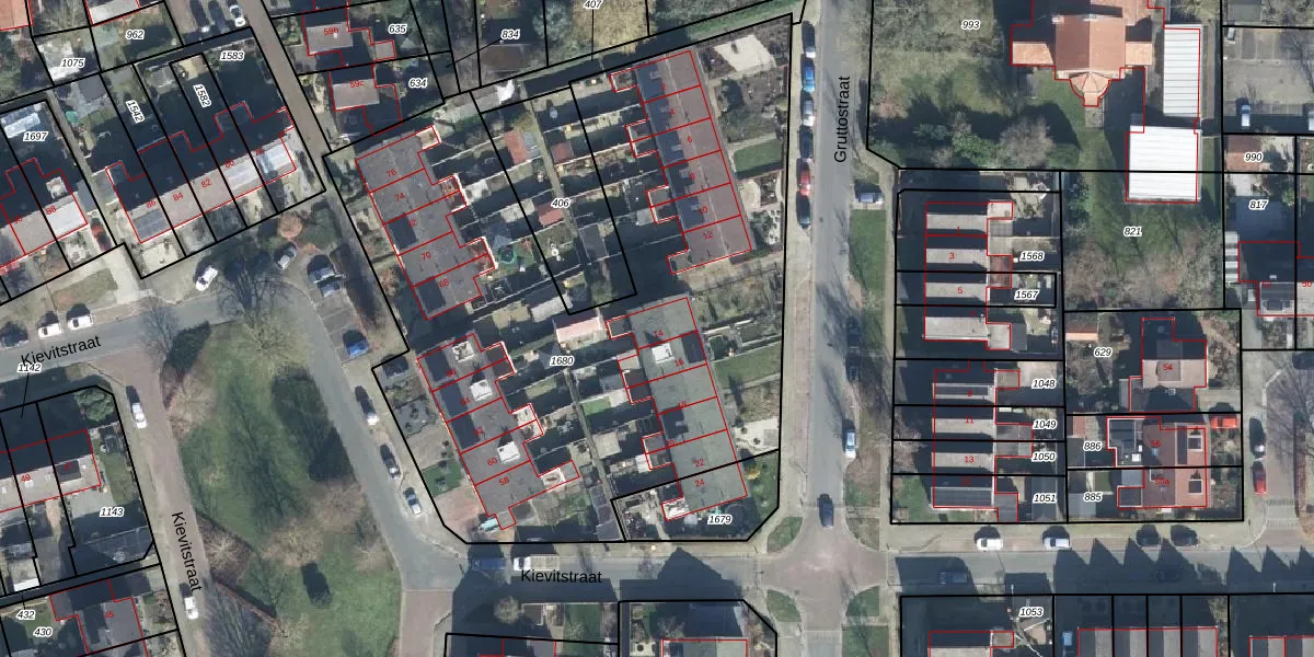 Het perceel waarop Gruttostraat 14 staat heeft een oppervlakte van 3640 m². Dit is een zeer groot perceel. De perceeloppervlakte wordt geregistreerd door het Kadaster. Gedetailleerde informatie over de maten van dit perceel kunt u vinden in het rapport Kadastrale kaart met maatvoering van Gruttostraat 14.