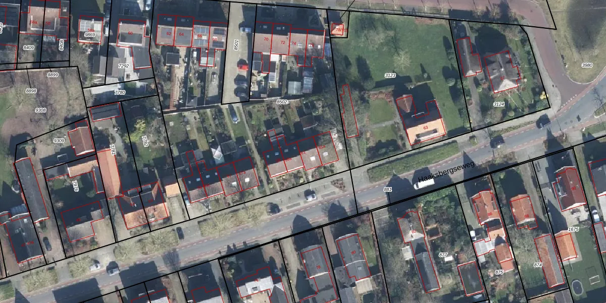 Het perceel waarop Haaksbergseweg 61 staat heeft een oppervlakte van 3436 m². Dit is een zeer groot perceel. De perceeloppervlakte wordt geregistreerd door het Kadaster. Gedetailleerde informatie over de maten van dit perceel kunt u vinden in het rapport Kadastrale kaart met maatvoering van Haaksbergseweg 61.