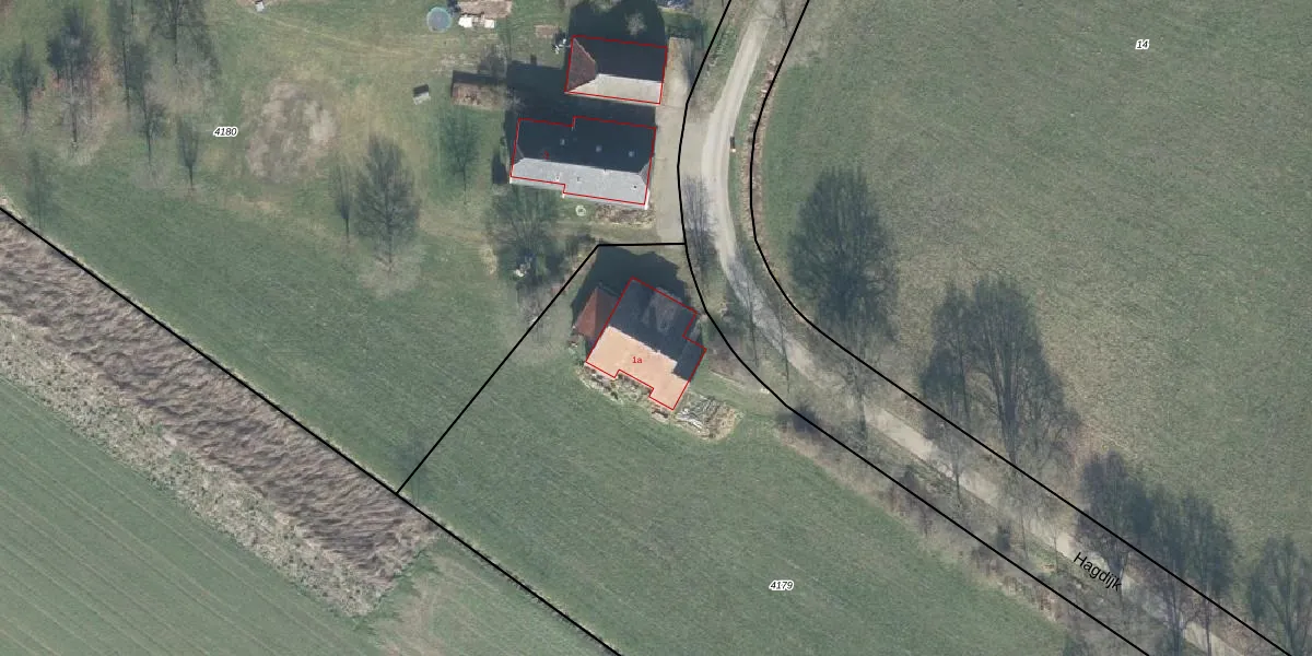 Hagdijk 1-a is gelegen op kadastraal perceel NDE00G4179. Deze kadastrale aanduiding is uniek en wordt gebruikt door het Kadaster om eigendomsrechten en andere zakelijke rechten vast te leggen. Het perceel maakt onderdeel uit van de kadastrale gemeente Neede.