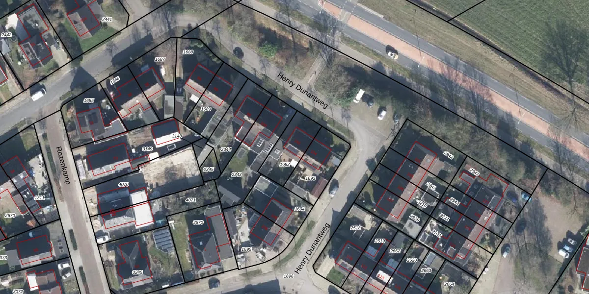 Henry Dunantweg 102 is gelegen op kadastraal perceel NDE00G1692. Deze kadastrale aanduiding is uniek en wordt gebruikt door het Kadaster om eigendomsrechten en andere zakelijke rechten vast te leggen. Het perceel maakt onderdeel uit van de kadastrale gemeente Neede.