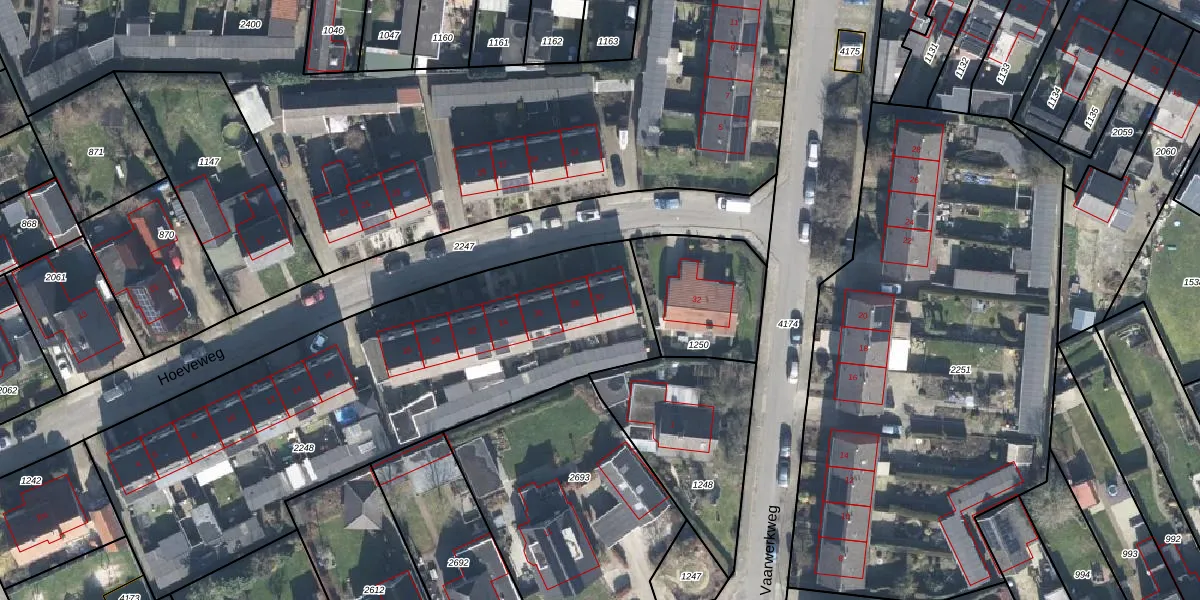 Het perceel waarop Hoeveweg 30 staat heeft een oppervlakte van 2380 m². Dit is een zeer groot perceel. De perceeloppervlakte wordt geregistreerd door het Kadaster. Gedetailleerde informatie over de maten van dit perceel kunt u vinden in het rapport Kadastrale kaart met maatvoering van Hoeveweg 30.