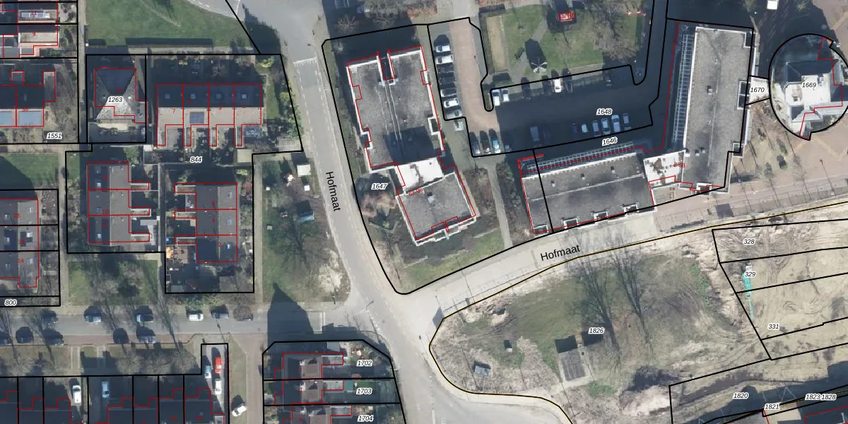 Het perceel waarop Hofmaat 82 staat heeft een oppervlakte van 1920 m². Dit is een zeer groot perceel. De perceeloppervlakte wordt geregistreerd door het Kadaster. Gedetailleerde informatie over de maten van dit perceel kunt u vinden in het rapport Kadastrale kaart met maatvoering van Hofmaat 82.