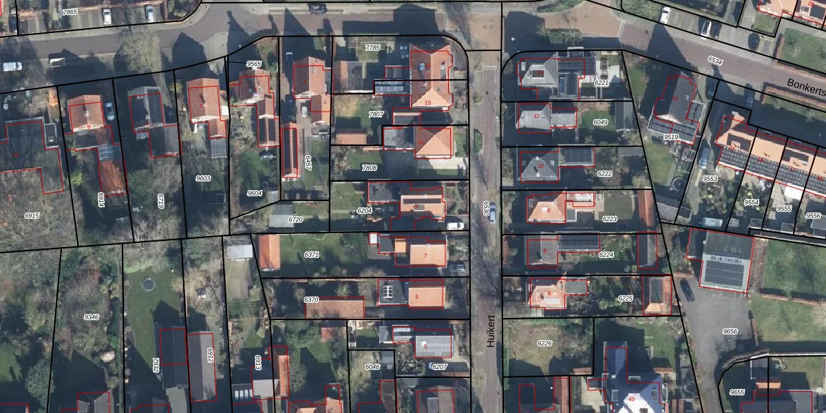 Gebruik de zoekbalk of klik op een perceel voor informatie over de adressen binnen dit perceel.
