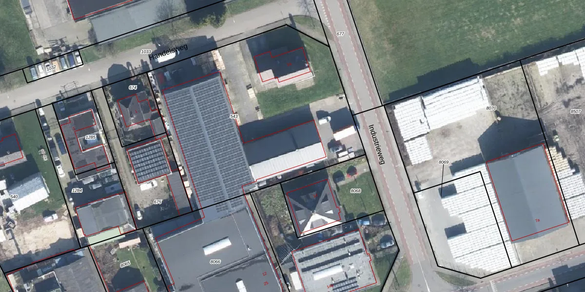 Het perceel waarop Industrieweg 12 staat heeft een oppervlakte van 3060 m². Dit is een zeer groot perceel. De perceeloppervlakte wordt geregistreerd door het Kadaster. Gedetailleerde informatie over de maten van dit perceel kunt u vinden in het rapport Kadastrale kaart met maatvoering van Industrieweg 12.