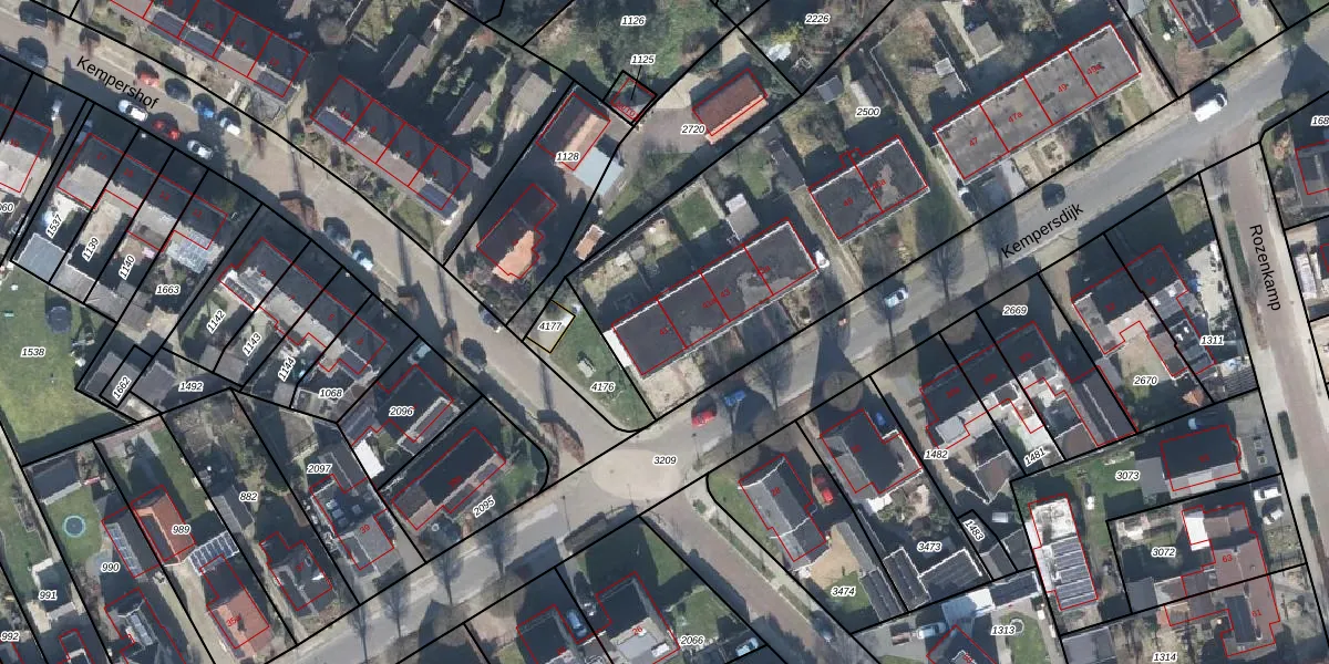 Het perceel waarop Kempersdijk 41 staat heeft een oppervlakte van 2754 m². Dit is een zeer groot perceel. De perceeloppervlakte wordt geregistreerd door het Kadaster. Gedetailleerde informatie over de maten van dit perceel kunt u vinden in het rapport Kadastrale kaart met maatvoering van Kempersdijk 41.