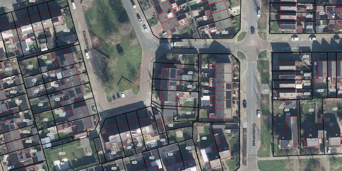 Gebruik de zoekbalk of klik op een perceel voor informatie over de adressen binnen dit perceel.