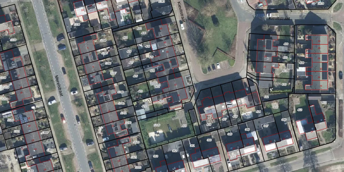 Gebruik de zoekbalk of klik op een perceel voor informatie over de adressen binnen dit perceel.