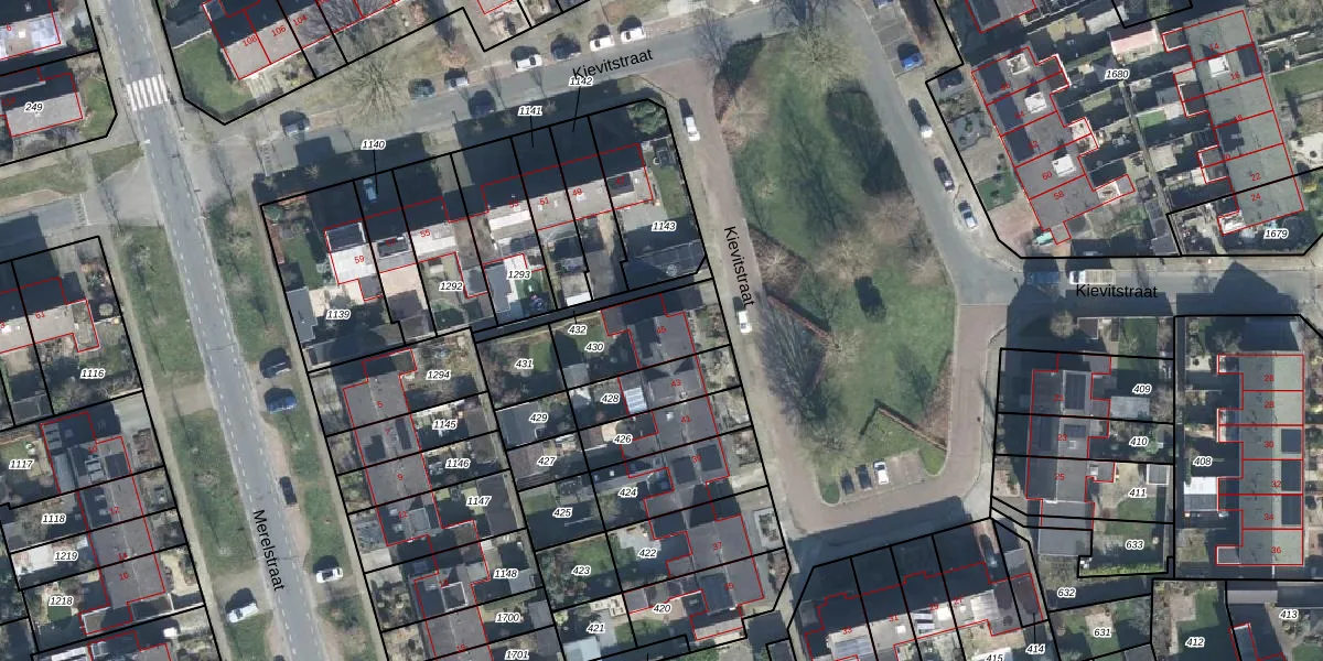 Het perceel waarop Kievitstraat 45 staat heeft een oppervlakte van 265 m². Dit is een middelgroot perceel. De perceeloppervlakte wordt geregistreerd door het Kadaster. Gedetailleerde informatie over de maten van dit perceel kunt u vinden in het rapport Kadastrale kaart met maatvoering van Kievitstraat 45.