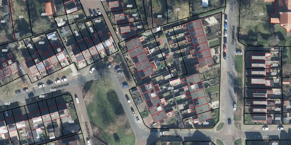 Het perceel waarop Kievitstraat 68 staat heeft een oppervlakte van 3640 m². Dit is een zeer groot perceel. De perceeloppervlakte wordt geregistreerd door het Kadaster. Gedetailleerde informatie over de maten van dit perceel kunt u vinden in het rapport Kadastrale kaart met maatvoering van Kievitstraat 68.