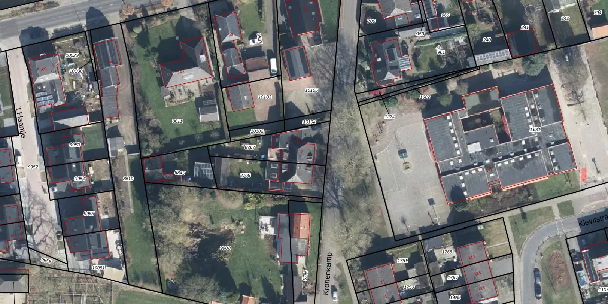 Het perceel waarop Kronenkamp 2 staat heeft een oppervlakte van 375 m². Dit is een groot perceel. De perceeloppervlakte wordt geregistreerd door het Kadaster. Gedetailleerde informatie over de maten van dit perceel kunt u vinden in het rapport Kadastrale kaart met maatvoering van Kronenkamp 2.