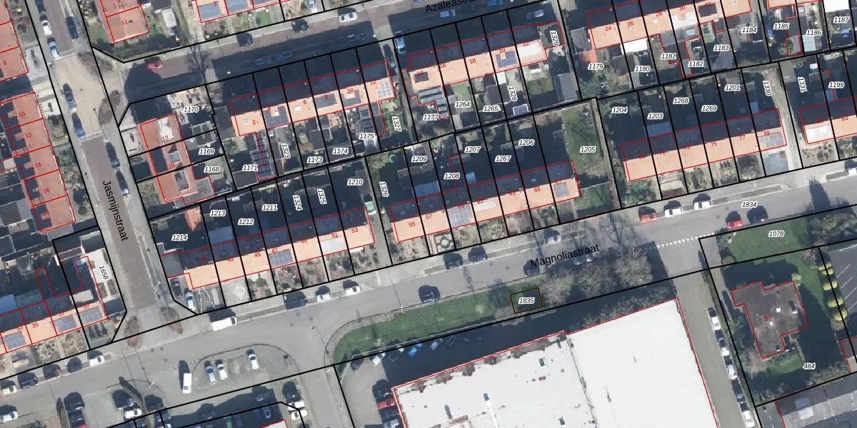Het perceel waarop Magnoliastraat 57 staat heeft een oppervlakte van 165 m². Dit is een middelgroot perceel. De perceeloppervlakte wordt geregistreerd door het Kadaster. Gedetailleerde informatie over de maten van dit perceel kunt u vinden in het rapport Kadastrale kaart met maatvoering van Magnoliastraat 57.