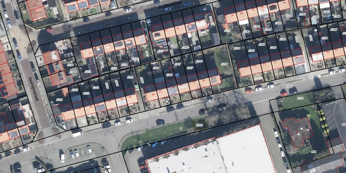 Het perceel waarop Magnoliastraat 59 staat heeft een oppervlakte van 165 m². Dit is een middelgroot perceel. De perceeloppervlakte wordt geregistreerd door het Kadaster. Gedetailleerde informatie over de maten van dit perceel kunt u vinden in het rapport Kadastrale kaart met maatvoering van Magnoliastraat 59.