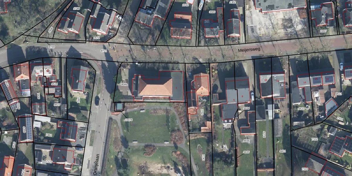 Het perceel waarop Meijersweg 2 staat heeft een oppervlakte van 885 m². Dit is een groot perceel. De perceeloppervlakte wordt geregistreerd door het Kadaster. Gedetailleerde informatie over de maten van dit perceel kunt u vinden in het rapport Kadastrale kaart met maatvoering van Meijersweg 2.