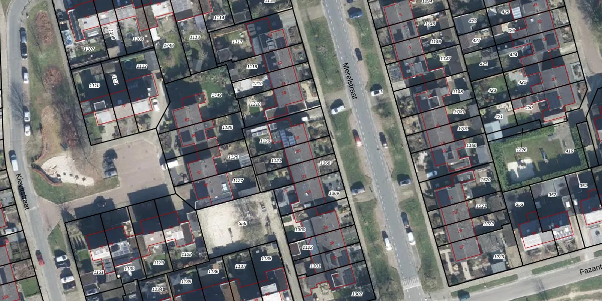 Het perceel waarop Merelstraat 20 staat heeft een oppervlakte van 166 m². Dit is een middelgroot perceel. De perceeloppervlakte wordt geregistreerd door het Kadaster. Gedetailleerde informatie over de maten van dit perceel kunt u vinden in het rapport Kadastrale kaart met maatvoering van Merelstraat 20.