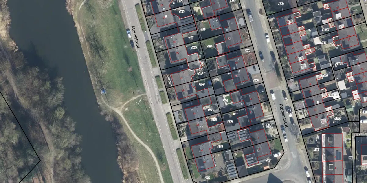 Merelstraat 39 is gelegen op kadastraal perceel NDE00I370. Deze kadastrale aanduiding is uniek en wordt gebruikt door het Kadaster om eigendomsrechten en andere zakelijke rechten vast te leggen. Het perceel maakt onderdeel uit van de kadastrale gemeente Neede.