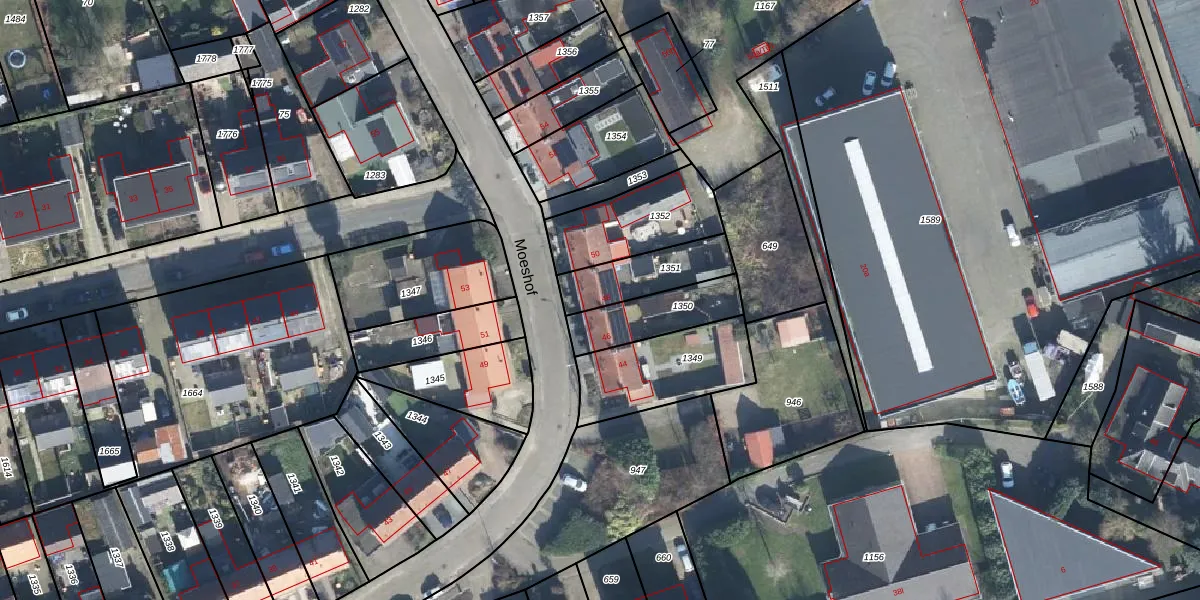 Moeshof 48 is gelegen op kadastraal perceel NDE00I1351. Deze kadastrale aanduiding is uniek en wordt gebruikt door het Kadaster om eigendomsrechten en andere zakelijke rechten vast te leggen. Het perceel maakt onderdeel uit van de kadastrale gemeente Neede.