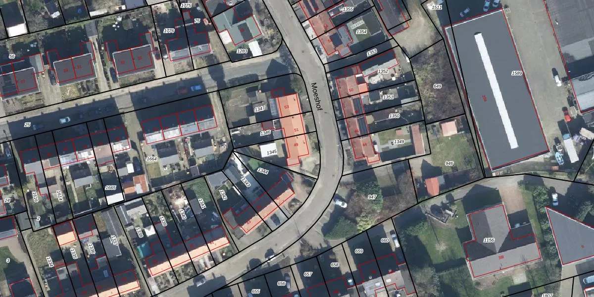Moeshof 49 is gelegen op kadastraal perceel NDE00I1345. Deze kadastrale aanduiding is uniek en wordt gebruikt door het Kadaster om eigendomsrechten en andere zakelijke rechten vast te leggen. Het perceel maakt onderdeel uit van de kadastrale gemeente Neede.