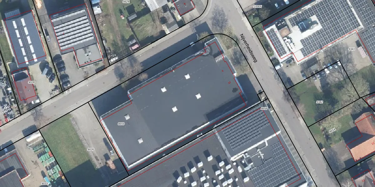 Het perceel waarop Nijverheidsweg 6 staat heeft een oppervlakte van 3773 m². Dit is een zeer groot perceel. De perceeloppervlakte wordt geregistreerd door het Kadaster. Gedetailleerde informatie over de maten van dit perceel kunt u vinden in het rapport Kadastrale kaart met maatvoering van Nijverheidsweg 6.