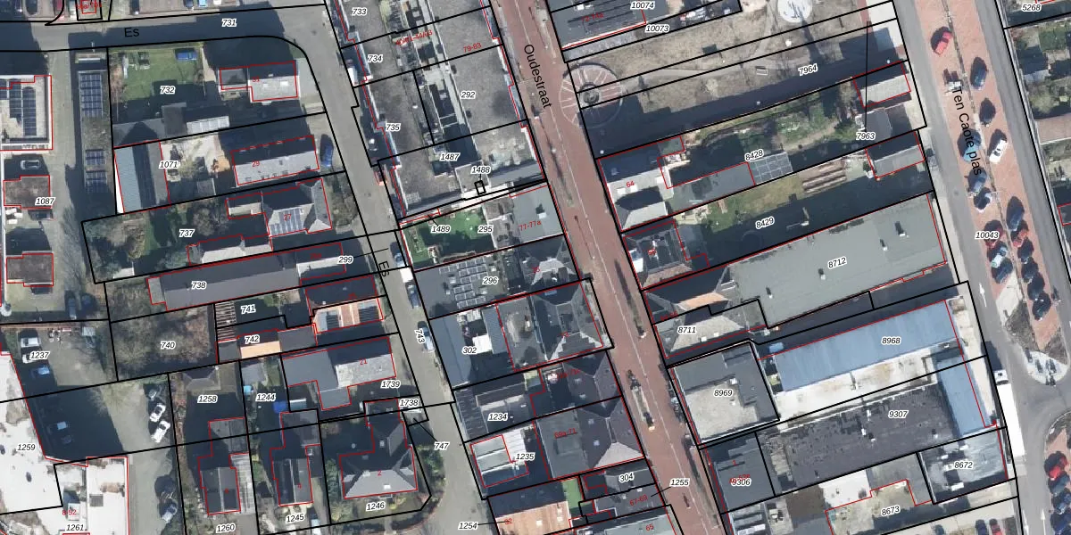 Het perceel waarop Oudestraat 75 staat heeft een oppervlakte van 265 m². Dit is een middelgroot perceel. De perceeloppervlakte wordt geregistreerd door het Kadaster. Gedetailleerde informatie over de maten van dit perceel kunt u vinden in het rapport Kadastrale kaart met maatvoering van Oudestraat 75.