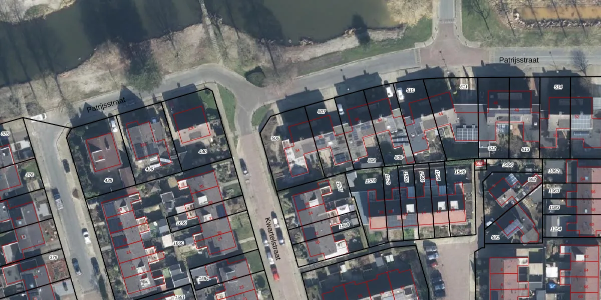 Het perceel waarop Patrijsstraat 34 staat heeft een oppervlakte van 405 m². Dit is een groot perceel. De perceeloppervlakte wordt geregistreerd door het Kadaster. Gedetailleerde informatie over de maten van dit perceel kunt u vinden in het rapport Kadastrale kaart met maatvoering van Patrijsstraat 34.