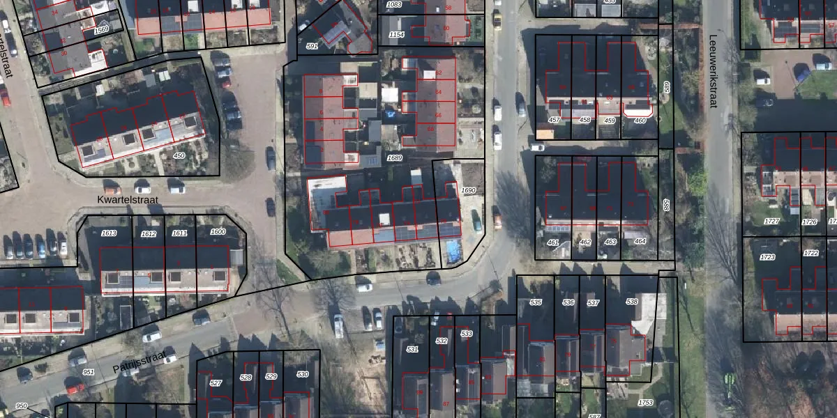 Het perceel waarop Patrijsstraat 72 staat heeft een oppervlakte van 2209 m². Dit is een zeer groot perceel. De perceeloppervlakte wordt geregistreerd door het Kadaster. Gedetailleerde informatie over de maten van dit perceel kunt u vinden in het rapport Kadastrale kaart met maatvoering van Patrijsstraat 72.