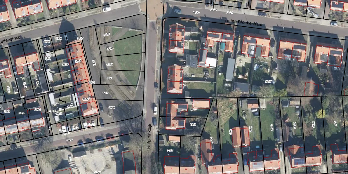 Het perceel waarop Rutgerinkdijk 12 staat heeft een oppervlakte van 4255 m². Dit is een zeer groot perceel. De perceeloppervlakte wordt geregistreerd door het Kadaster. Gedetailleerde informatie over de maten van dit perceel kunt u vinden in het rapport Kadastrale kaart met maatvoering van Rutgerinkdijk 12.