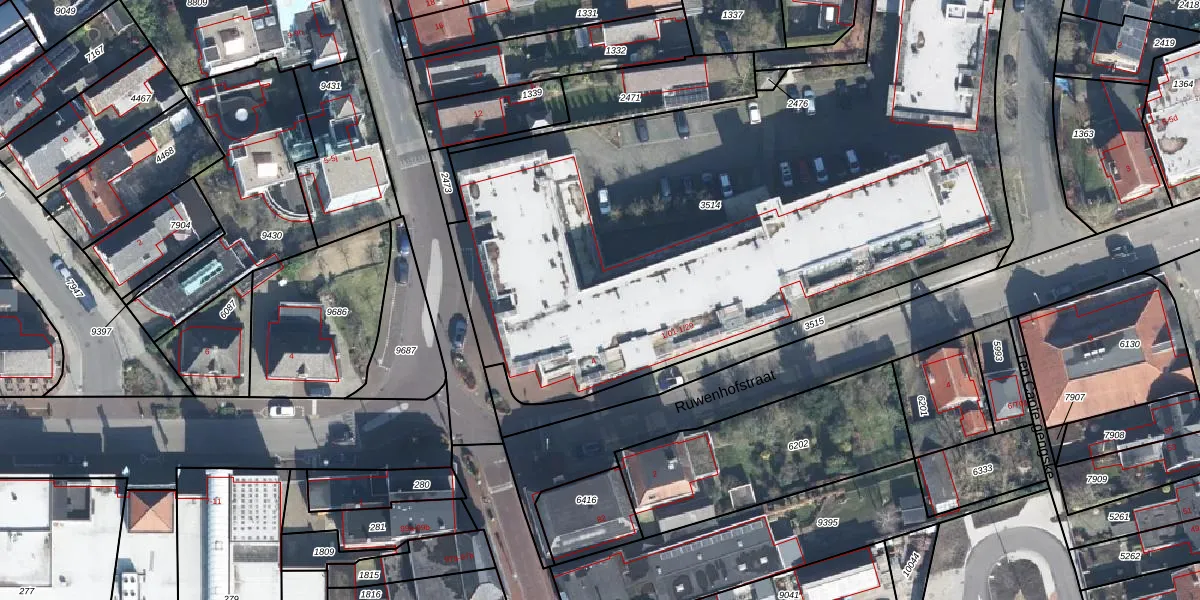 Het perceel waarop Ruwenhofstraat 1-20 staat heeft een oppervlakte van 4246 m². Dit is een zeer groot perceel. De perceeloppervlakte wordt geregistreerd door het Kadaster. Gedetailleerde informatie over de maten van dit perceel kunt u vinden in het rapport Kadastrale kaart met maatvoering van Ruwenhofstraat 1-20.