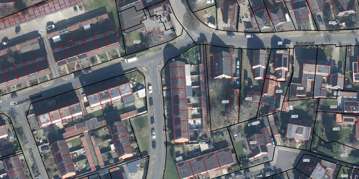 Het perceel waarop Schoolstraat 24 staat heeft een oppervlakte van 2205 m². Dit is een zeer groot perceel. De perceeloppervlakte wordt geregistreerd door het Kadaster. Gedetailleerde informatie over de maten van dit perceel kunt u vinden in het rapport Kadastrale kaart met maatvoering van Schoolstraat 24.