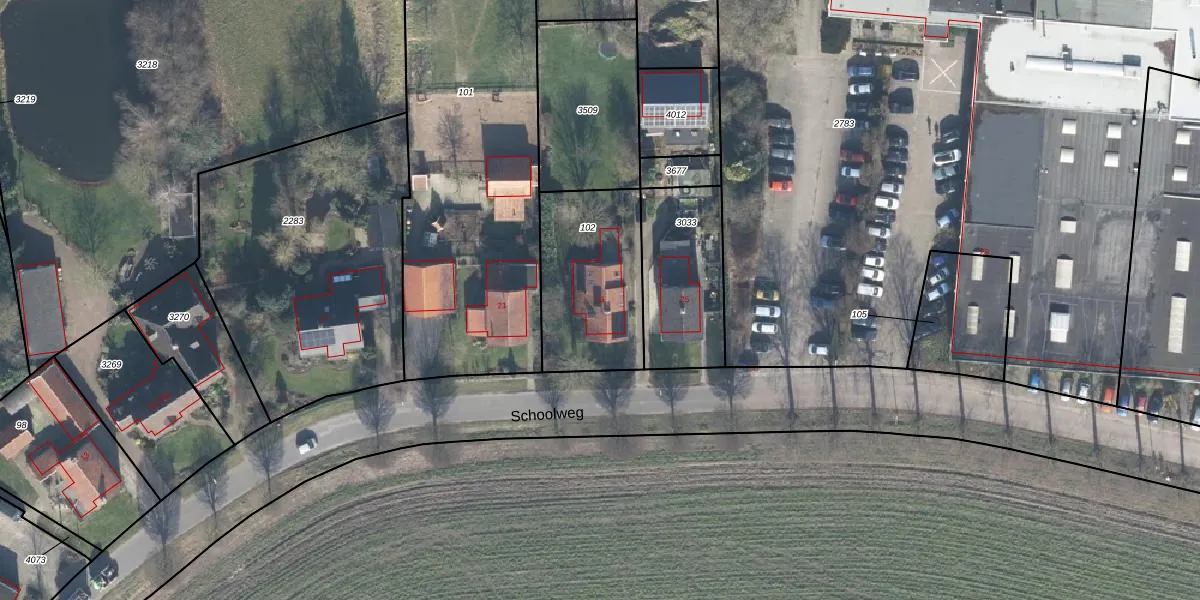 Schoolweg 23 is gelegen op kadastraal perceel NDE00G102. Deze kadastrale aanduiding is uniek en wordt gebruikt door het Kadaster om eigendomsrechten en andere zakelijke rechten vast te leggen. Het perceel maakt onderdeel uit van de kadastrale gemeente Neede.