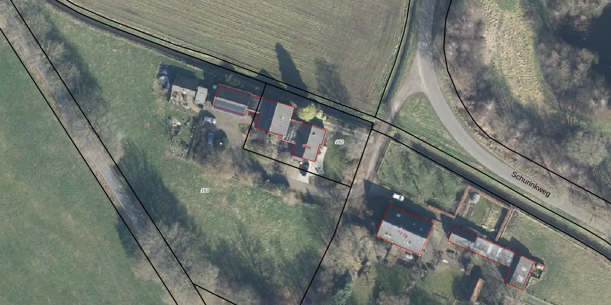 Schurinkweg 9 is gelegen op kadastraal perceel NDE00L162. Deze kadastrale aanduiding is uniek en wordt gebruikt door het Kadaster om eigendomsrechten en andere zakelijke rechten vast te leggen. Het perceel maakt onderdeel uit van de kadastrale gemeente Neede.