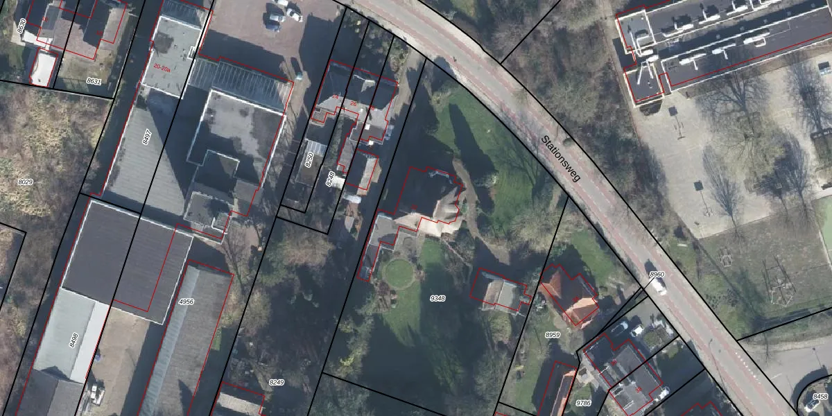 Het perceel waarop Stationsweg 32 staat heeft een oppervlakte van 2948 m². Dit is een zeer groot perceel. De perceeloppervlakte wordt geregistreerd door het Kadaster. Gedetailleerde informatie over de maten van dit perceel kunt u vinden in het rapport Kadastrale kaart met maatvoering van Stationsweg 32.