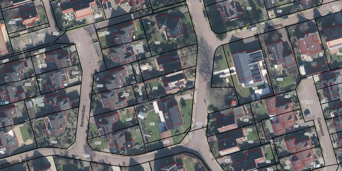 Gebruik de zoekbalk of klik op een perceel voor informatie over de adressen binnen dit perceel.