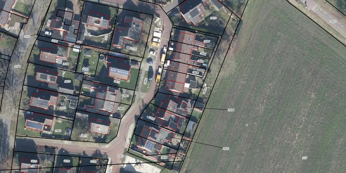 Het perceel waarop Vonderman 19 staat heeft een oppervlakte van 546 m². Dit is een groot perceel. De perceeloppervlakte wordt geregistreerd door het Kadaster. Gedetailleerde informatie over de maten van dit perceel kunt u vinden in het rapport Kadastrale kaart met maatvoering van Vonderman 19.