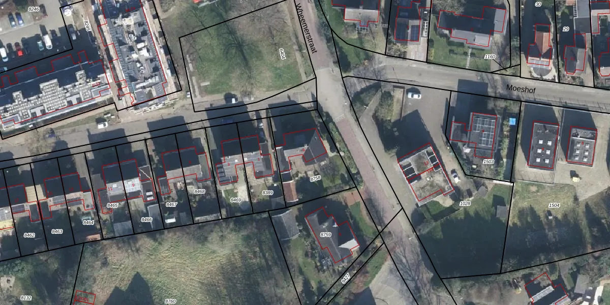 Het perceel waarop Wheemerstraat 6 staat heeft een oppervlakte van 590 m². Dit is een groot perceel. De perceeloppervlakte wordt geregistreerd door het Kadaster. Gedetailleerde informatie over de maten van dit perceel kunt u vinden in het rapport Kadastrale kaart met maatvoering van Wheemerstraat 6.